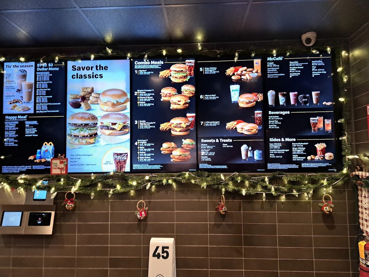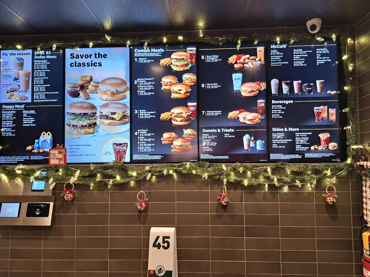 On the beverage front, McDonald's serves cold classics such as Coca-Cola®, Diet Coke®, Sprite®, and Dr. Pepper®, catering to varied tastes and complementing every meal. Customer reviews highlight attentive service, cleanliness, and a cozy atmosphere, especially noting the careful customizations like extra milk in a cappuccino. This menu marries consistency with quality, making McDonald's a dependable choice that delivers familiar and well-crafted flavors every visit.
